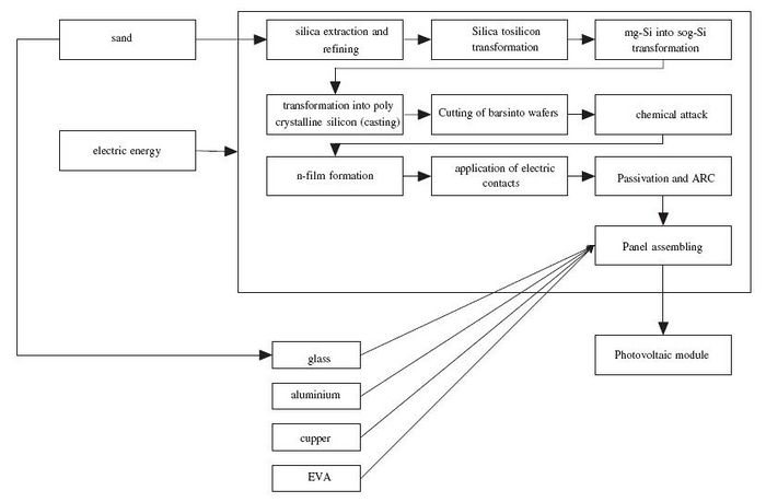 Figure 3: Le cycle de production et les ressources nécessaires d'un module en silicium[6].
